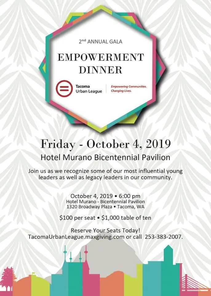 We are pleased to announce our 2nd Empowerment Dinner Gala! You don’t want to miss this black tie event. Please join us as we celebrate community members who have responded to the call to action put out at our 2019 State of Black Tacoma.